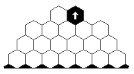 Due to the swap rule, the first move should not be too good nor too bad. It happens that most hexes on the board are too good to start with, so the number of good first moves is quite limited. The following diagram shows the percentage of games won for each opening move. The first stone to be placed is black. Since the board looks the same when rotated by 180°, the diagram only considers half of the board. The hexes that lack numbers are very rarely played, but not necessarily bad moves. (Although a hex somewhere near the center is definitely a bad move.) Typically a good starting move has a winning percentage around 50%. If it is higher, we would swap it, and if less, we would not. The most common opening moves played are A3, B2 and A2, in that order, all in the acute corner of the board. Other moves to consider are C2, D2, E2, A11, A12 and other moves along the A column.