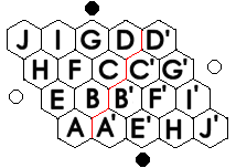 For white to have a winning path which crosses at this point, there must be a continuous chain of white stones from cell Y to the left white border row. But since black followed the above strategy, this implies there is a continuous chain of corresponding black stones from Y' down to the bottom black border row. Therefore the white chain is blocked from connecting to the right. This contradicts the assumption that white has a win, so black must have a win.